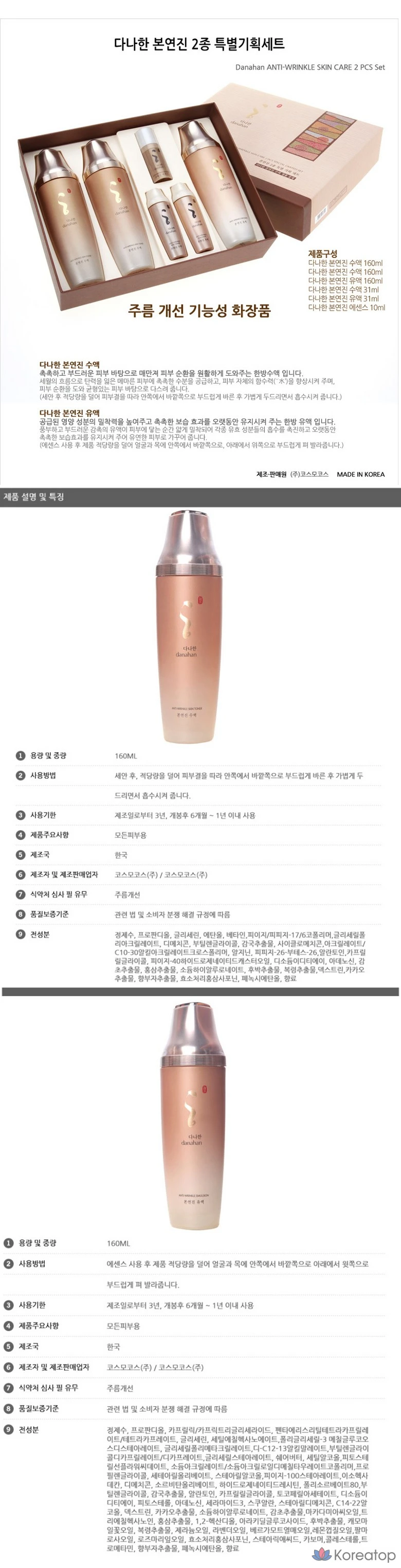Набор для планирования Danahan Bonyeonjin из 2 предметов (2 тюбика + лосьон), 1 комплект.