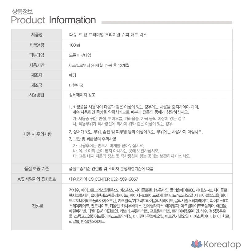 Dashu For Men Original Matte Hair Wax, 15 мл, 1 шт.