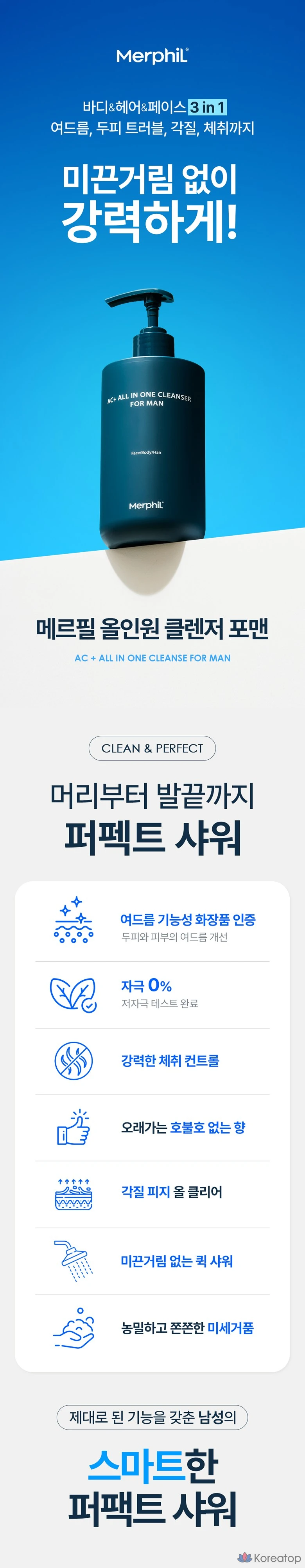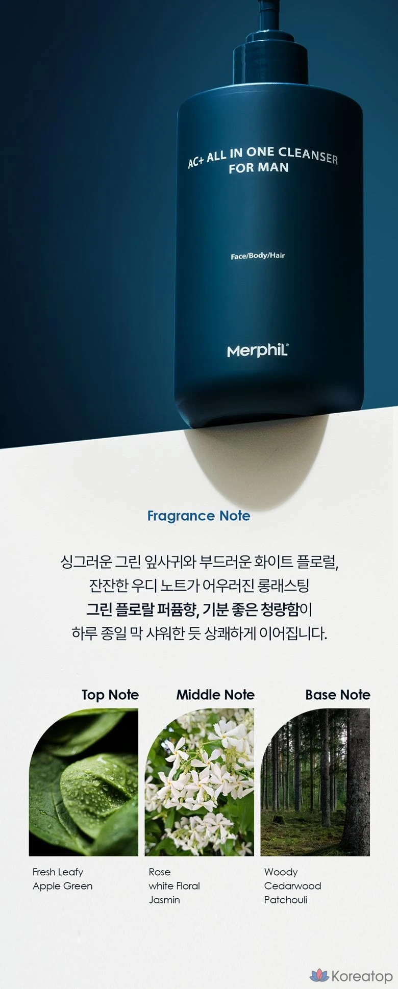 Merfil Шампунь и гель для душа «все в одном» для мужчин: от акне, себорейного дерматита и неприятного запаха кожи головы, 1 шт., 500 г