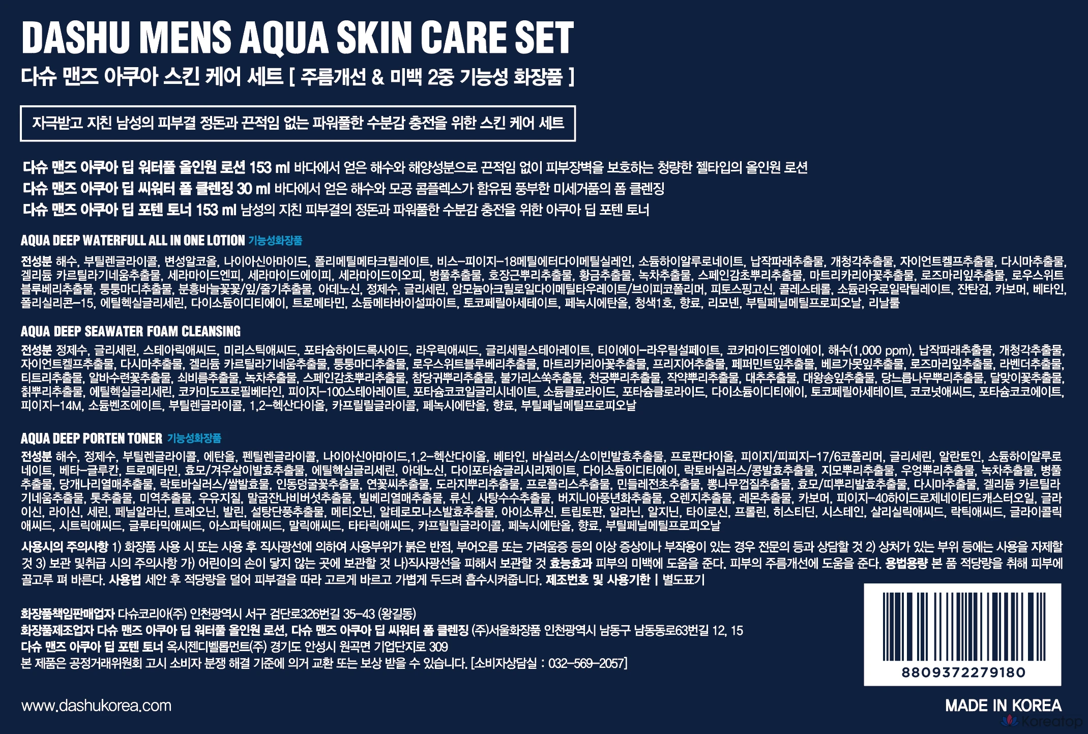 Набор DASHU Men's Aqua Skincare Basic Potent Toner 153 мл + универсальный лосьон 153 мл + пенка для умывания 30 мл, 1 комплект.