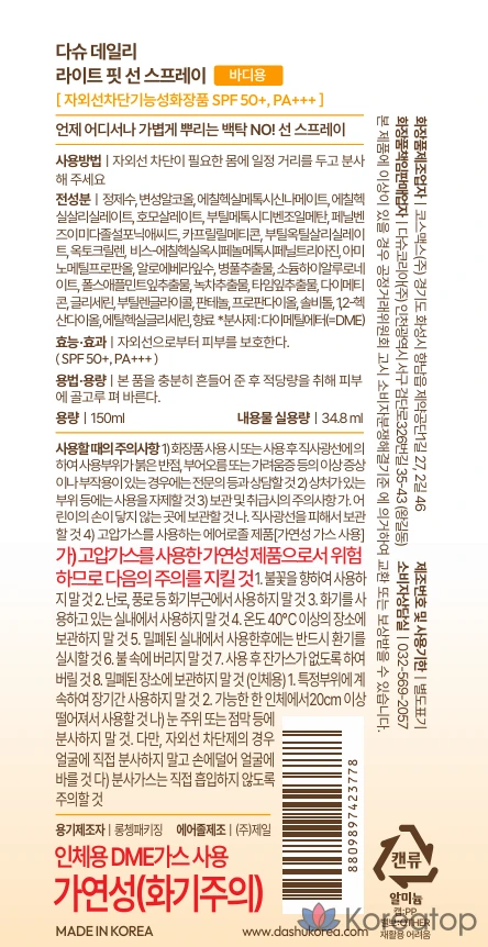 Солнцезащитный спрей Dashu Daily Lightfit SPF 50+ PA+++