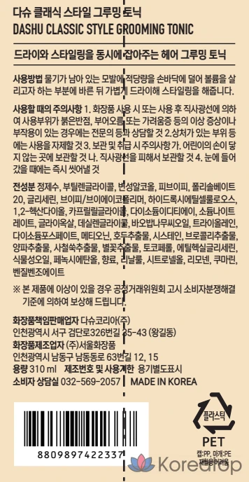 Тоник для укладки волос DASHU Classic Volume Grooming Tonic, 400 мл, 1 шт.