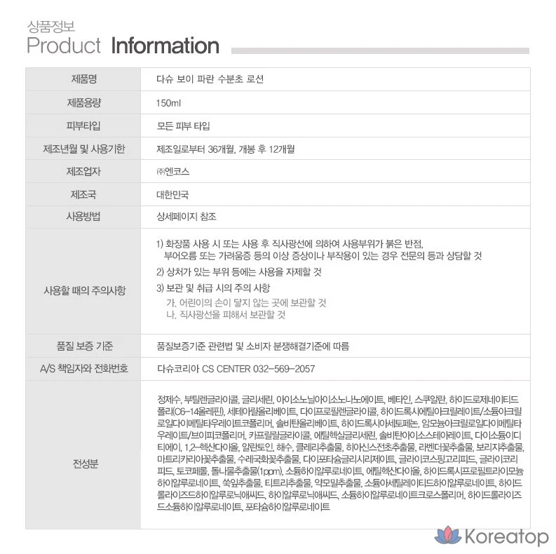 Увлажняющий лосьон Dashu Blue