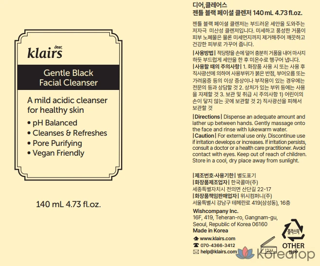 Гель для умывания Dear, Klairs Gentle Black, 20 мл, 1 шт.