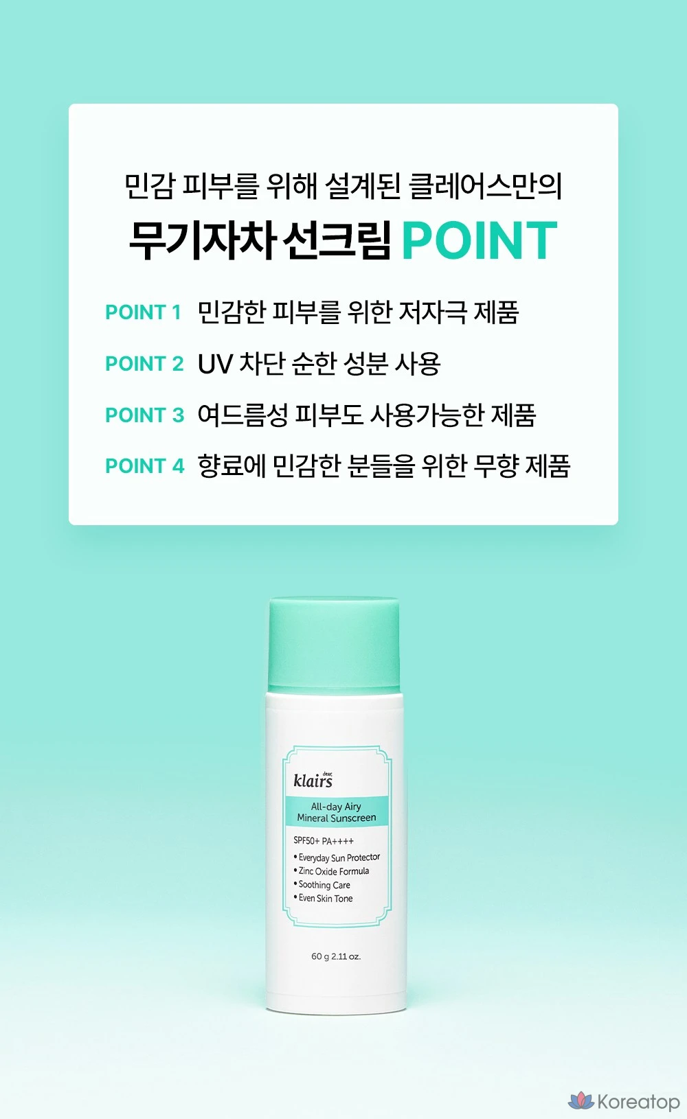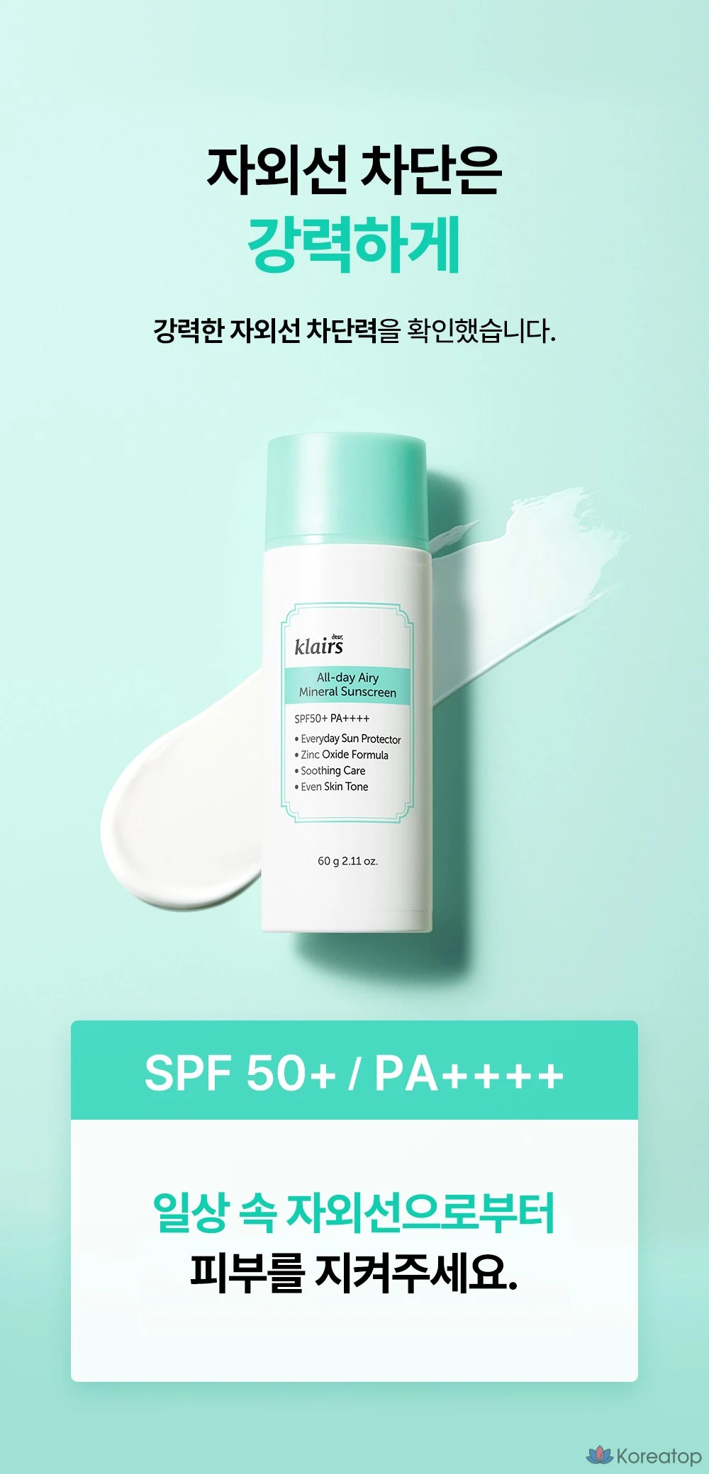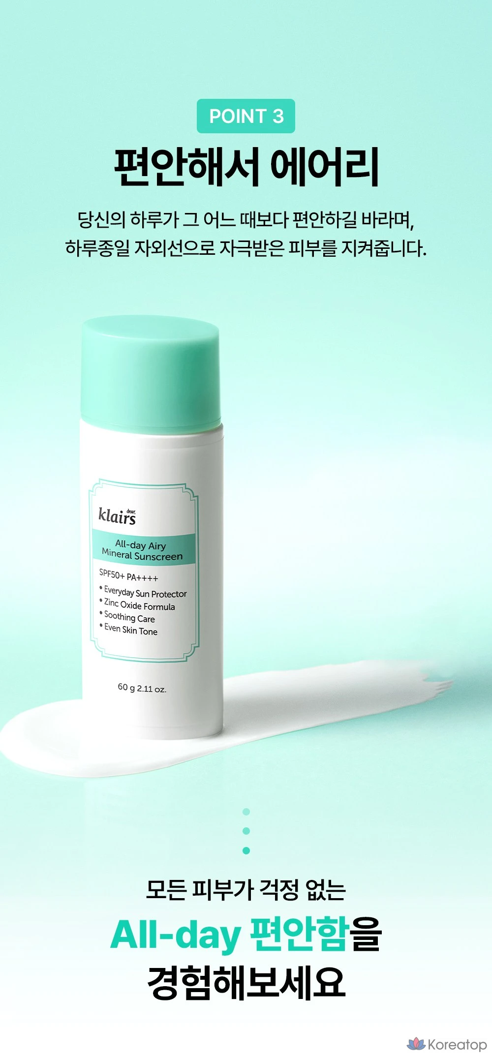 Минеральный солнцезащитный крем Dear, Klairs All Day Airy SPF50+ PA++++, 35 г, 1 шт.