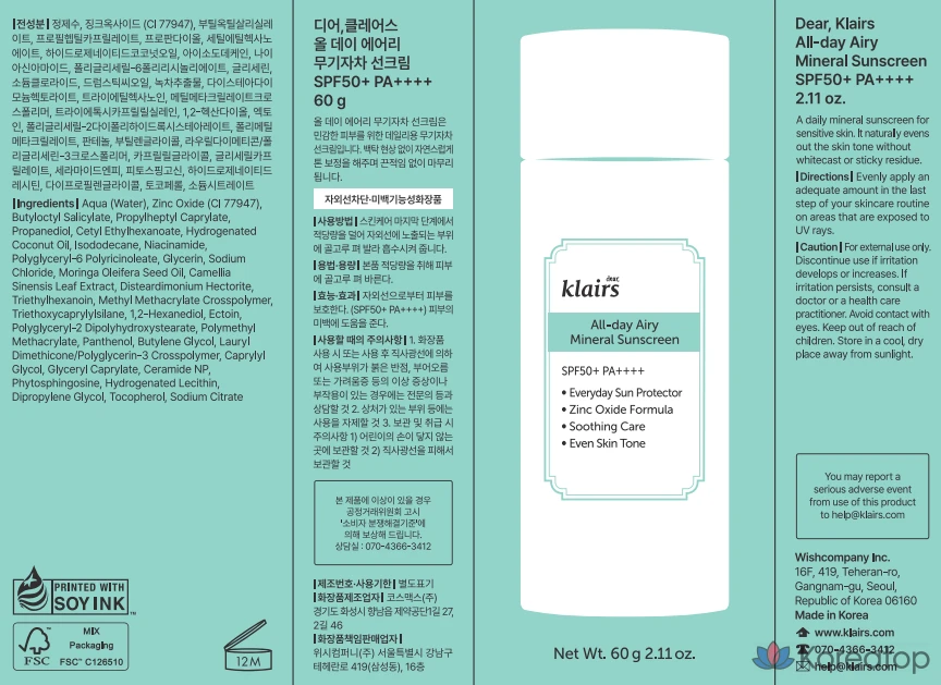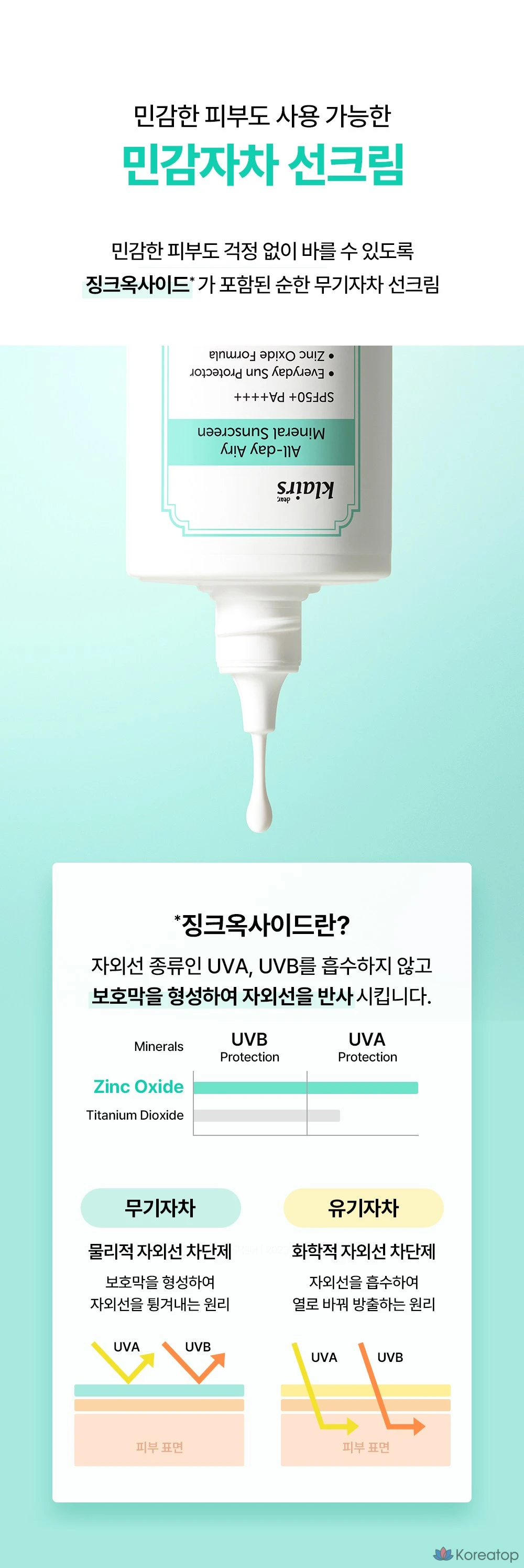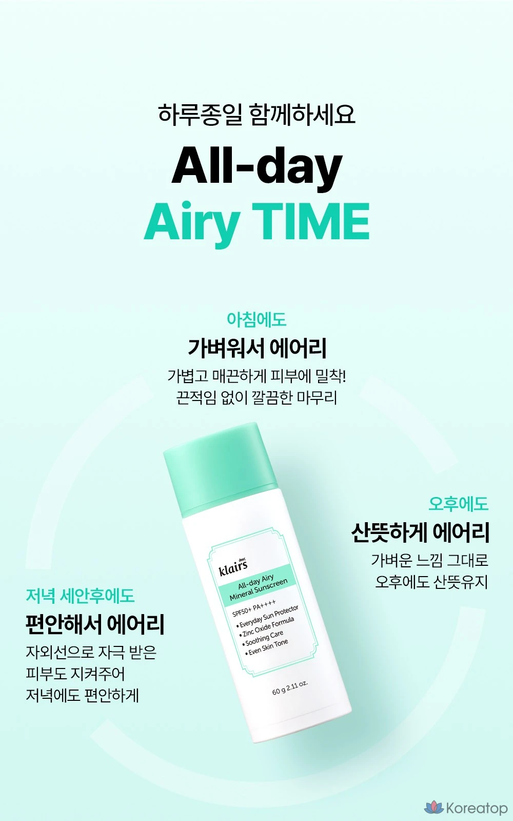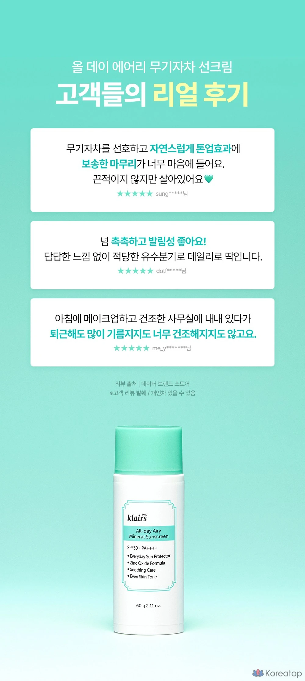 Минеральный солнцезащитный крем Dear, Klairs All Day Airy SPF50+ PA++++, 35 г, 1 шт.