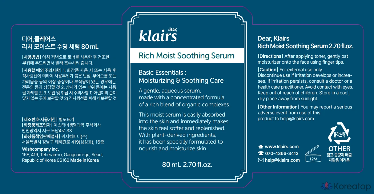 Увлажняющая успокаивающая сыворотка Dear, Klairs Rich Moist, 80 мл, 1 шт.