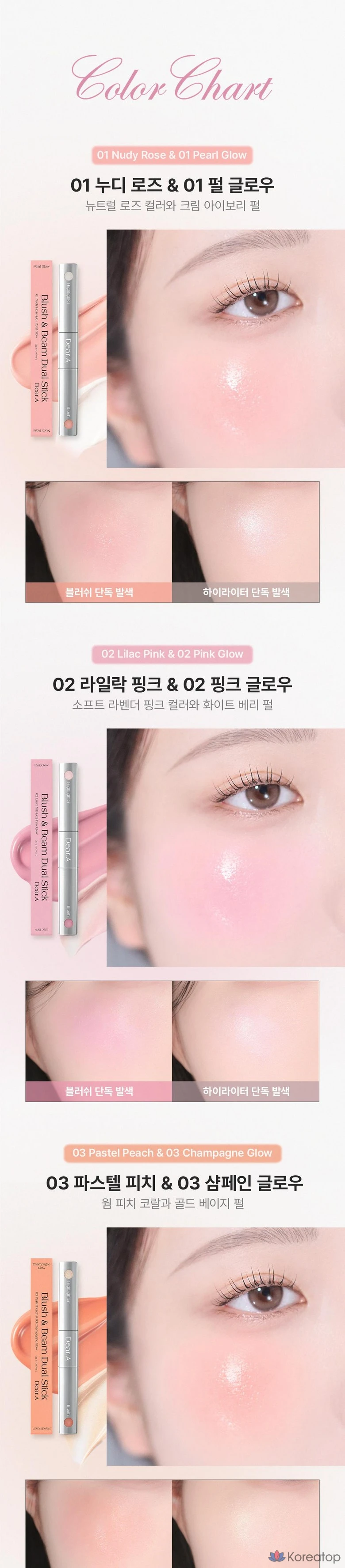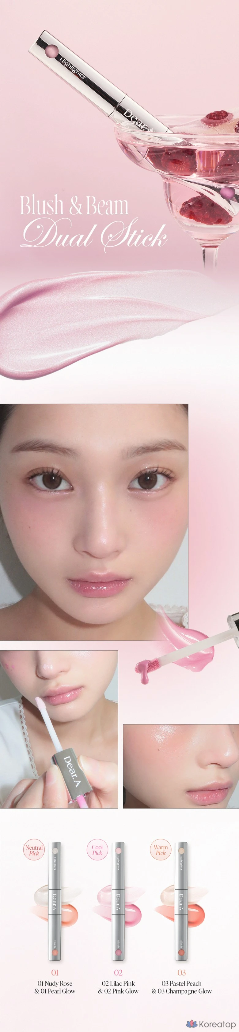 Dear.A Blush & Beam Dual Stick Highlighter, 03 Pastel Peach & Champagne Glow, 1 шт.