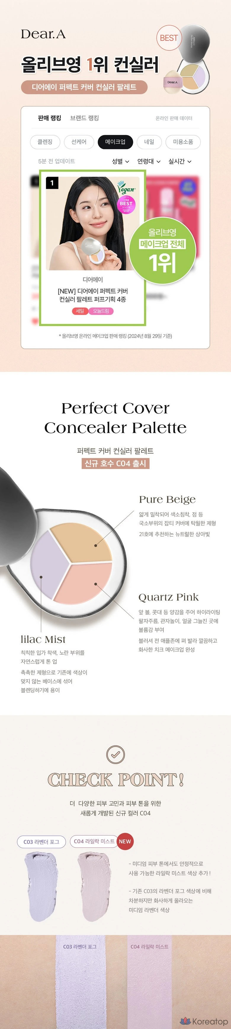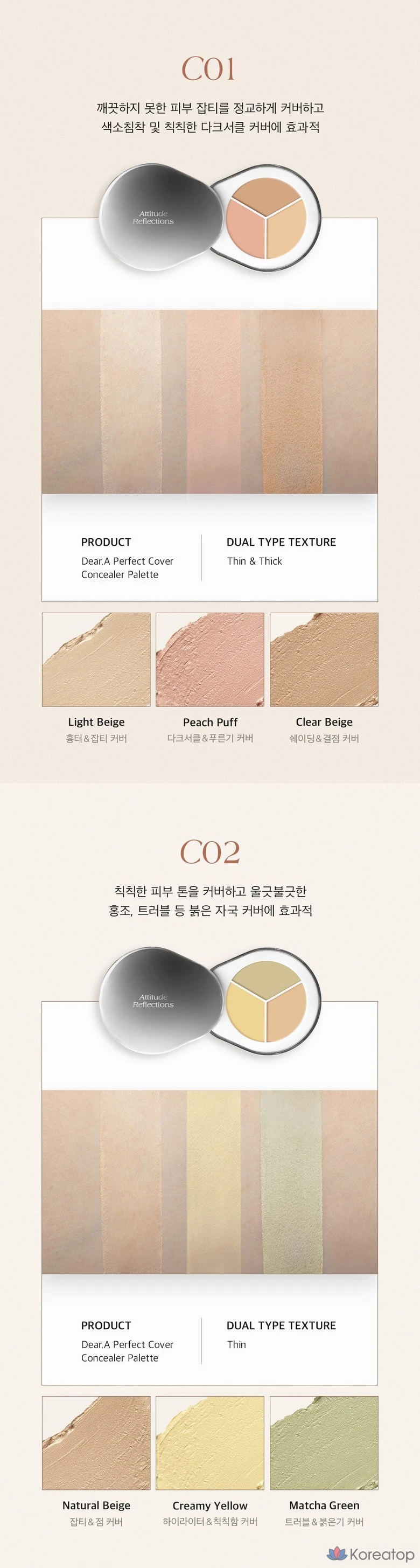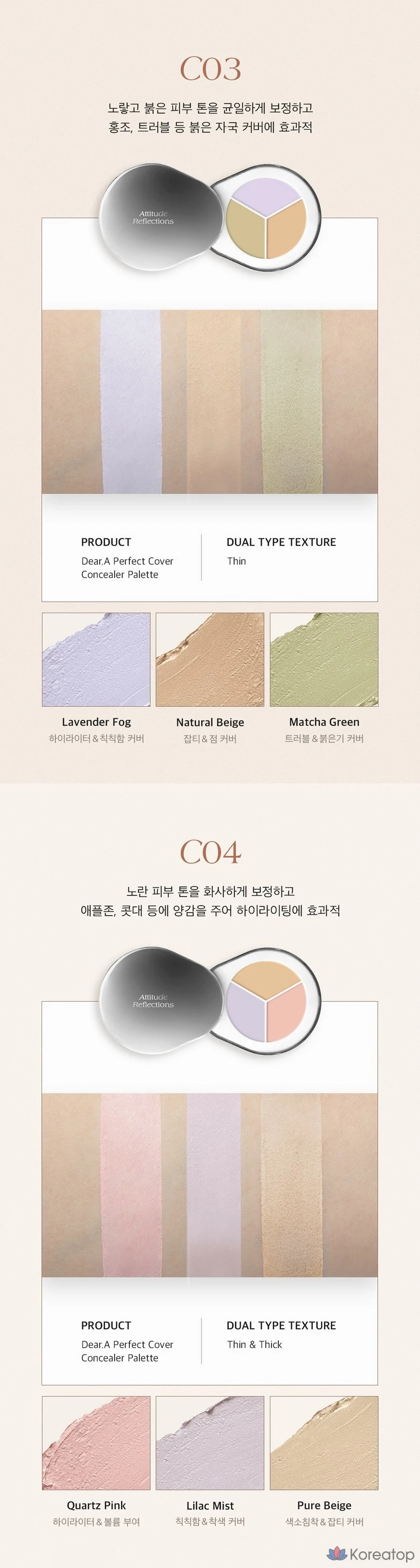 Палетка консилеров Dear.A Perfect Cover, набор из 4 оттенков, C04, 1 шт.