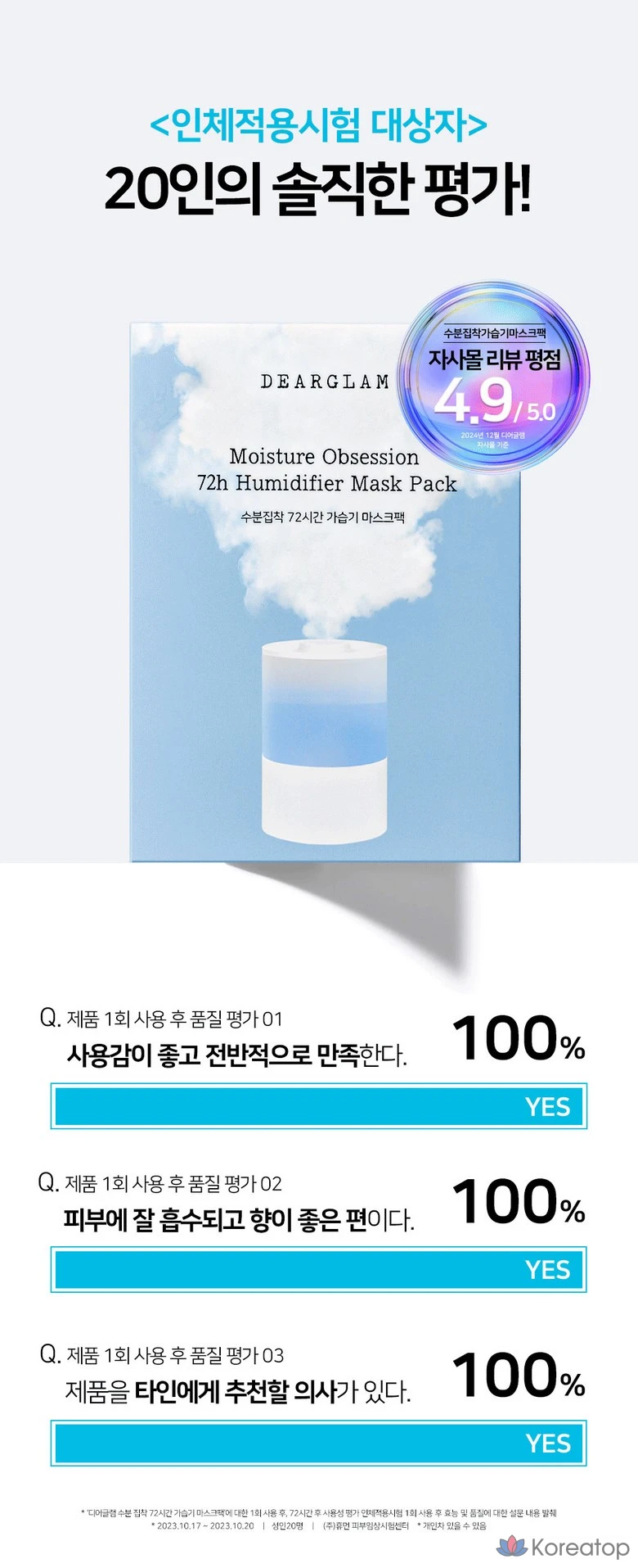 Набор увлажняющих масок-увлажнителей DEARGLAM Moisture Obsession, 1 упаковка, 5 упаковок