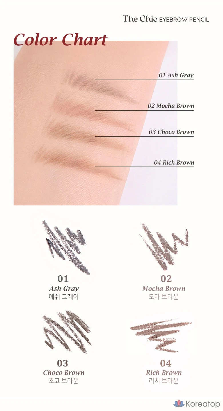 Карандаш для бровей DEARMAY The Chic, 0,18 г, 1 шт., цвет 01 пепельно-серый.