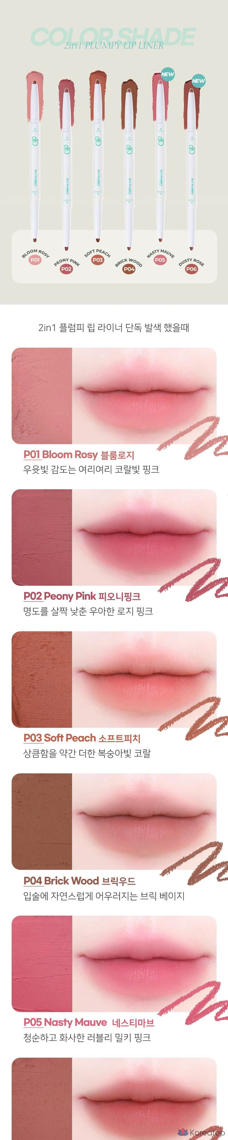 Карандаш для губ DEARMAY 2-в-1, 0,36 г, 1 шт., P02 Розовый пион
