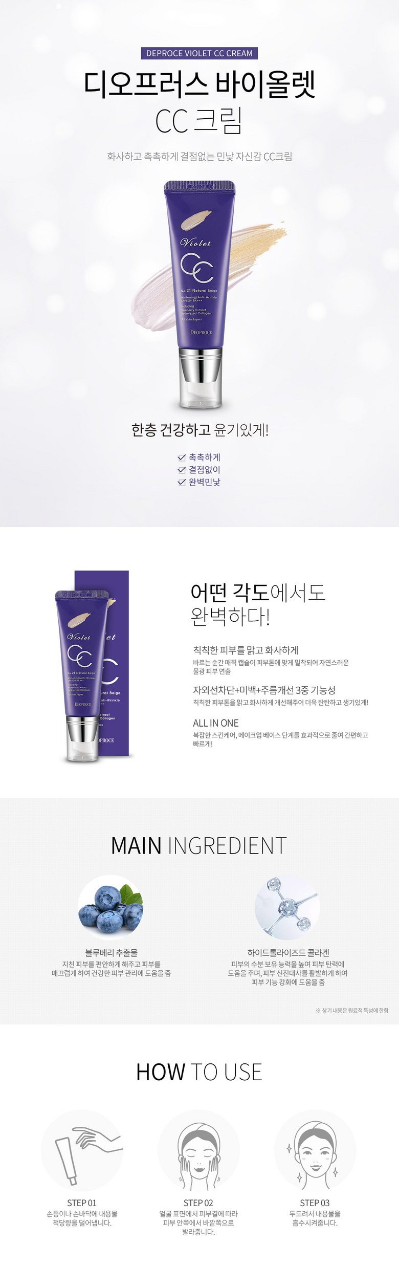 CC-крем Deoproce Violet SPF50+ PA+++ № 23, 1 шт., песочно-бежевый.