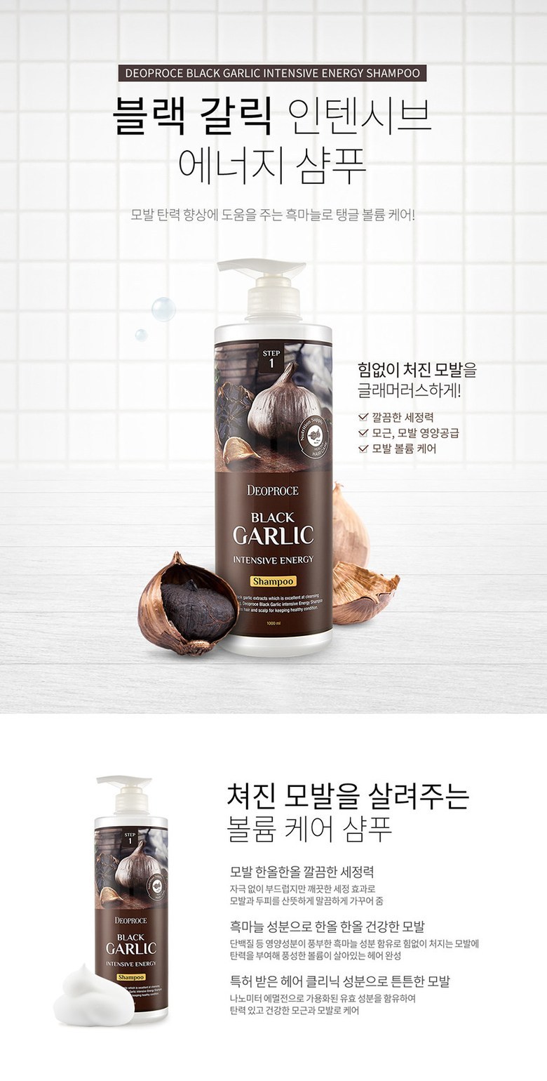 Интенсивный энергетический шампунь Deoproce с черным чесноком, 1000 мл, 1 флакон, 1 л