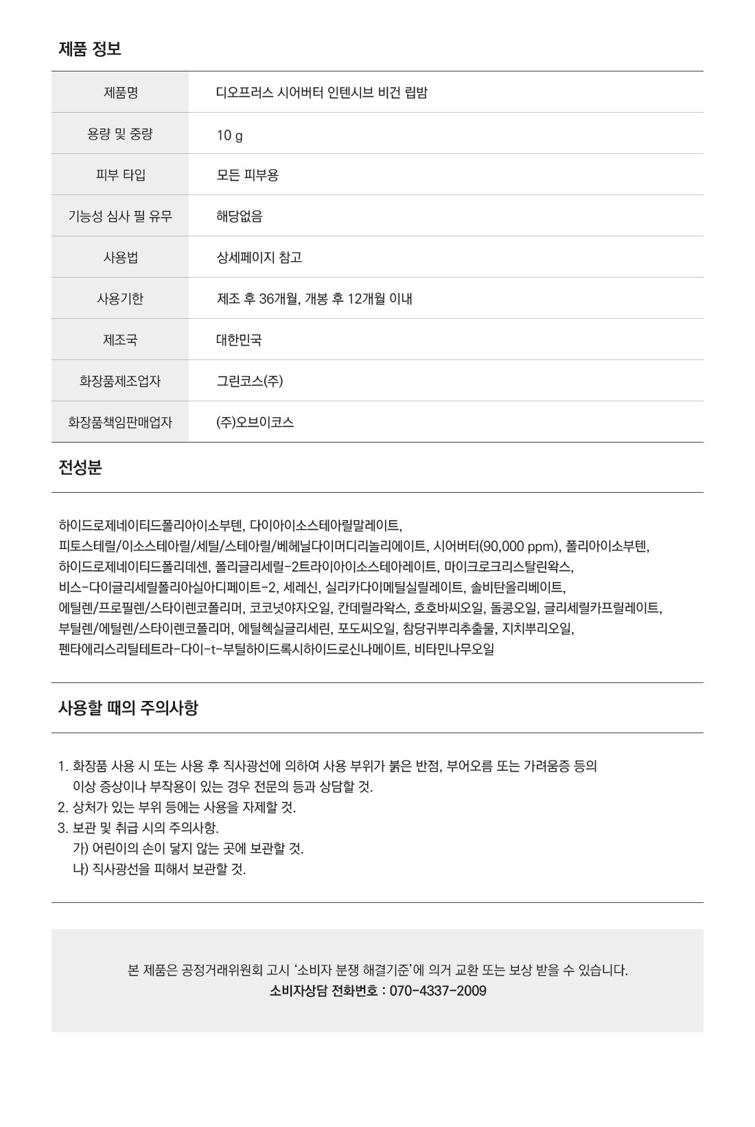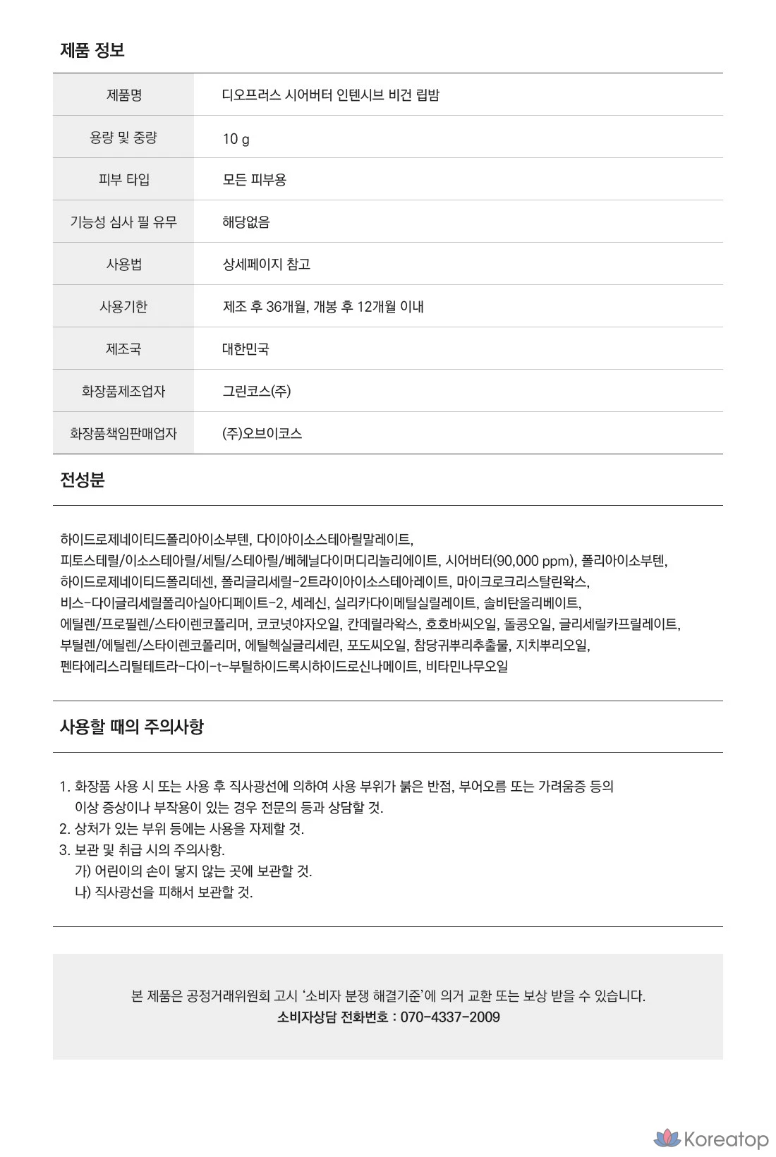 Интенсивный веганский бальзам для губ Deoproce с маслом ши, 10 г, без отдушек, 1 шт.