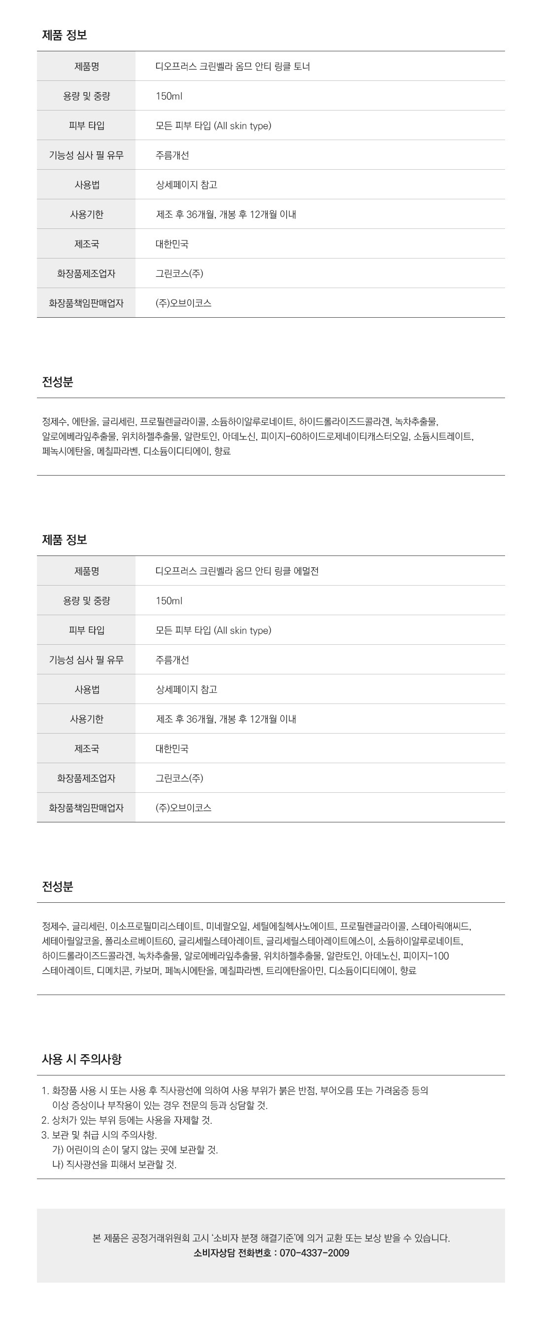 Набор из 4 лосьонов против морщин Deoproce Cleanbella Homme Anti-Wrinkle Skin Lotion Basic, 1 комплект.