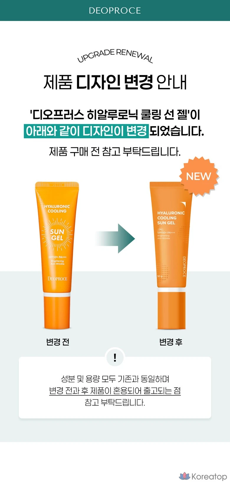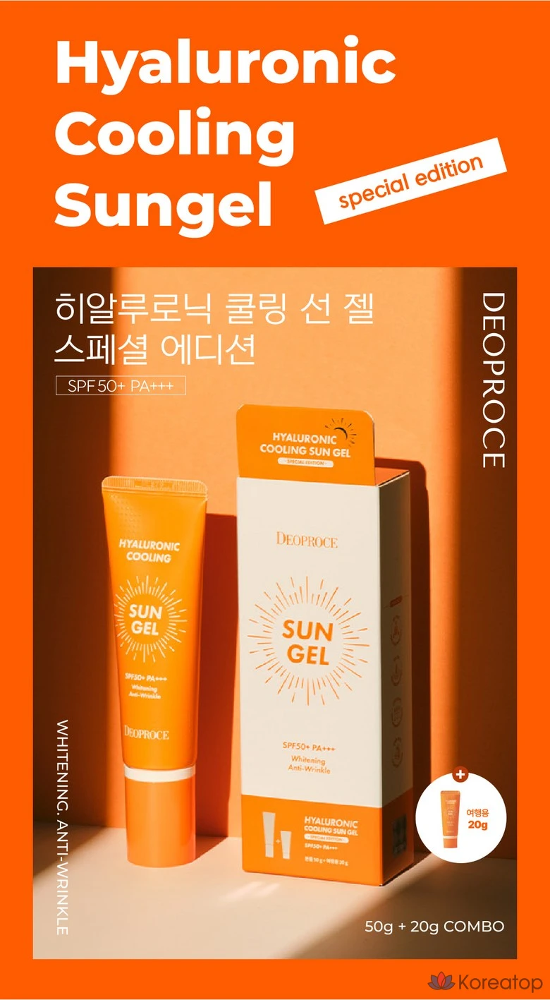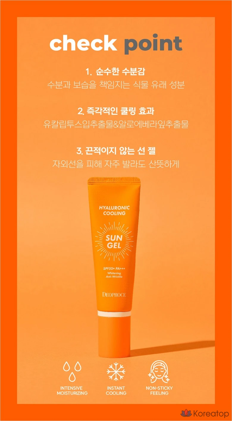Охлаждающий солнцезащитный гель Deoproce с гиалуроновой кислотой, SPF50+ PA+++, 70 г, 1 комплект.