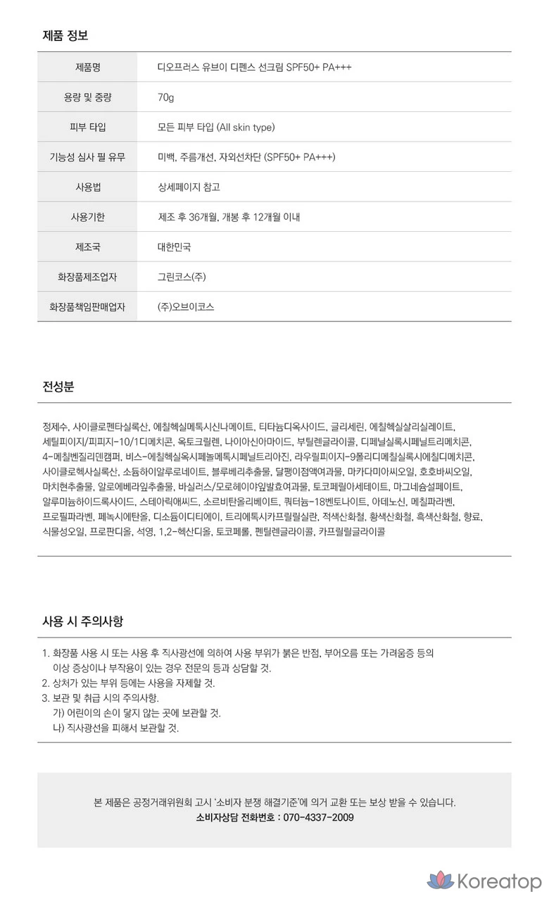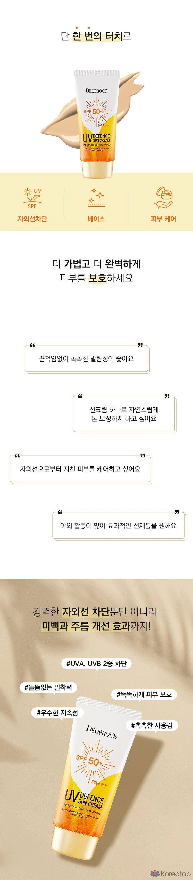 Солнцезащитный крем Deoproce UV Defense SPF 50+ PA+++ 70 г, 1 шт.