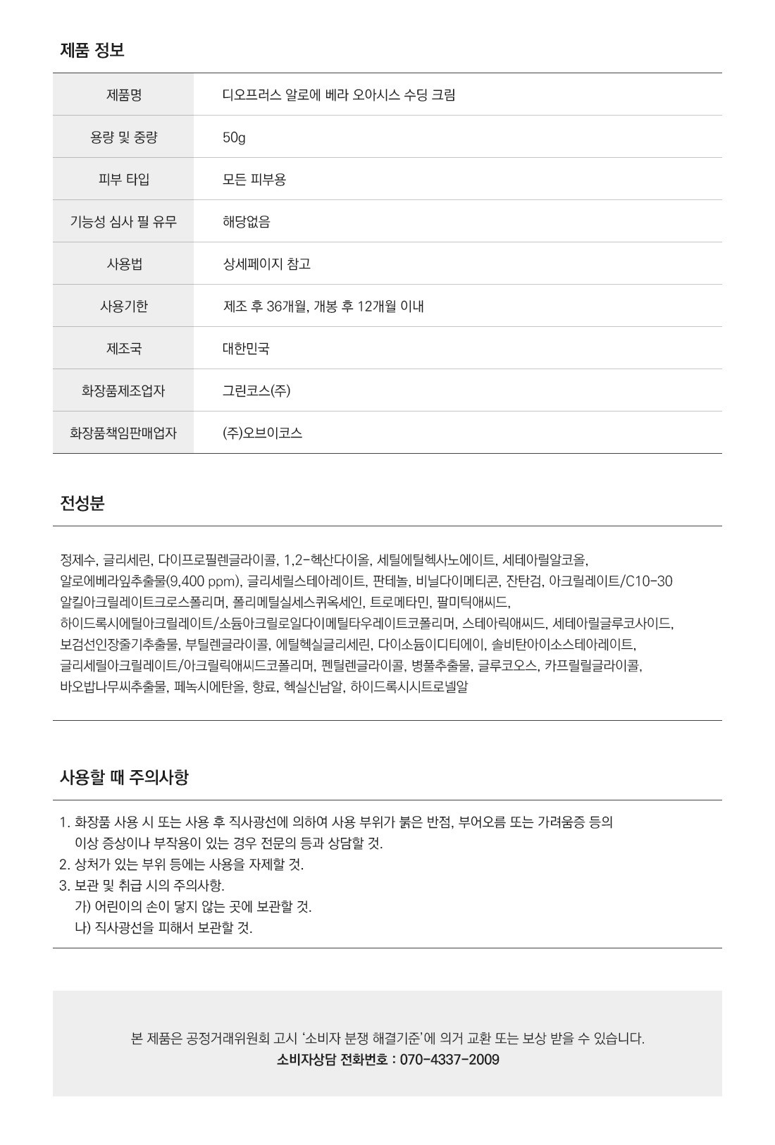 Успокаивающий крем Deoproce Aloe Vera Oasis, 50 г, 1 шт.
