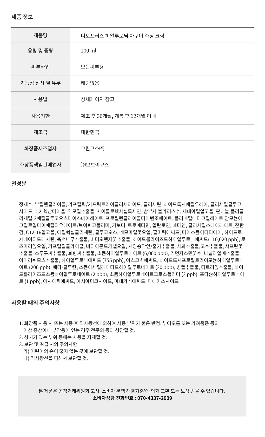 Успокаивающий крем Deoproce Hyaluronic Aqua, 1 шт., 100 мл