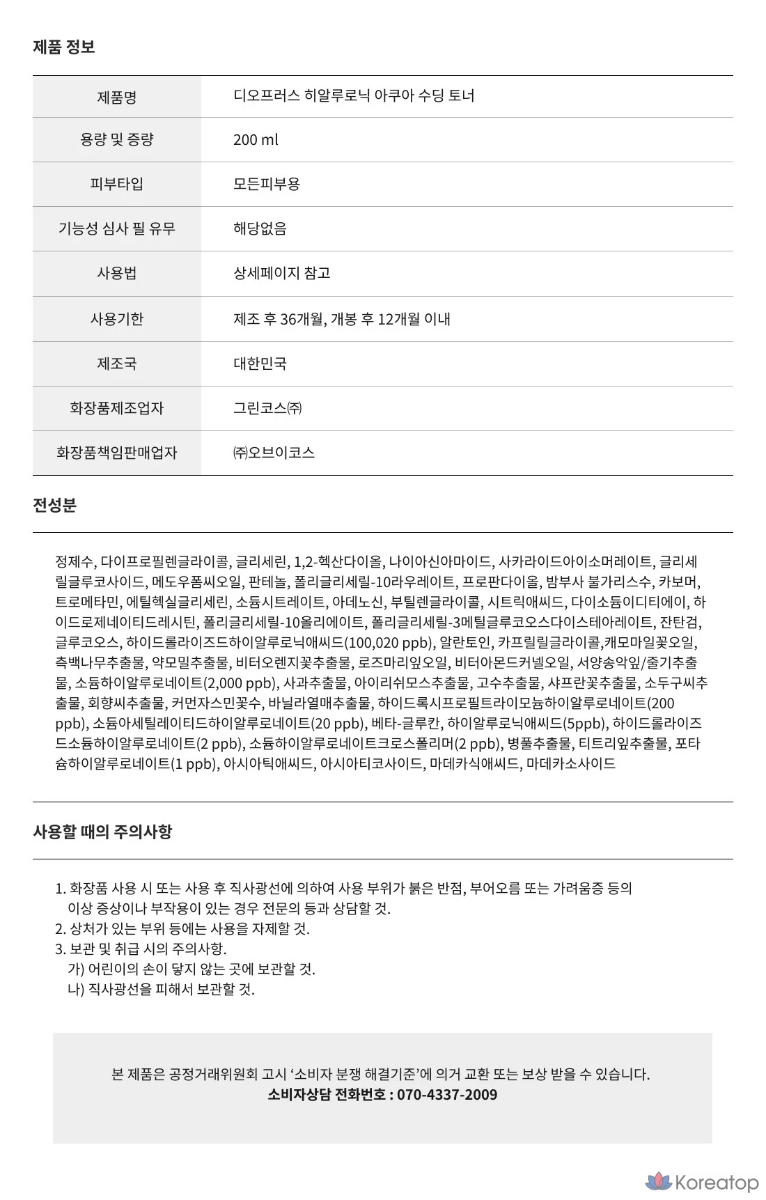 Успокаивающий тоник Deoproce Hyaluronic Aqua, 200 мл, 1 шт.