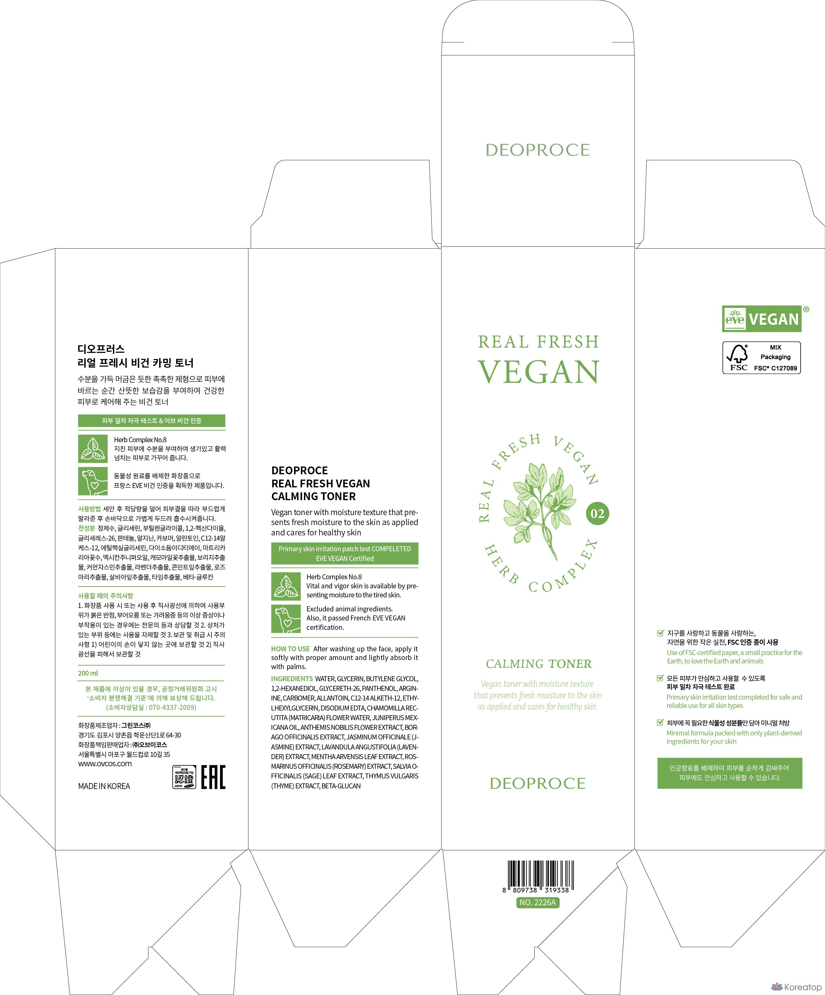 Успокаивающий тоник Deoproce Real Fresh Vegan, 1 шт., 200 мл