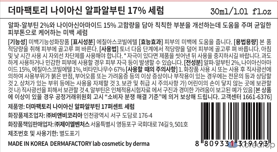 Derma Factory Сыворотка Niacin Alpha Arbutin 17%, 30 мл, 1 шт.