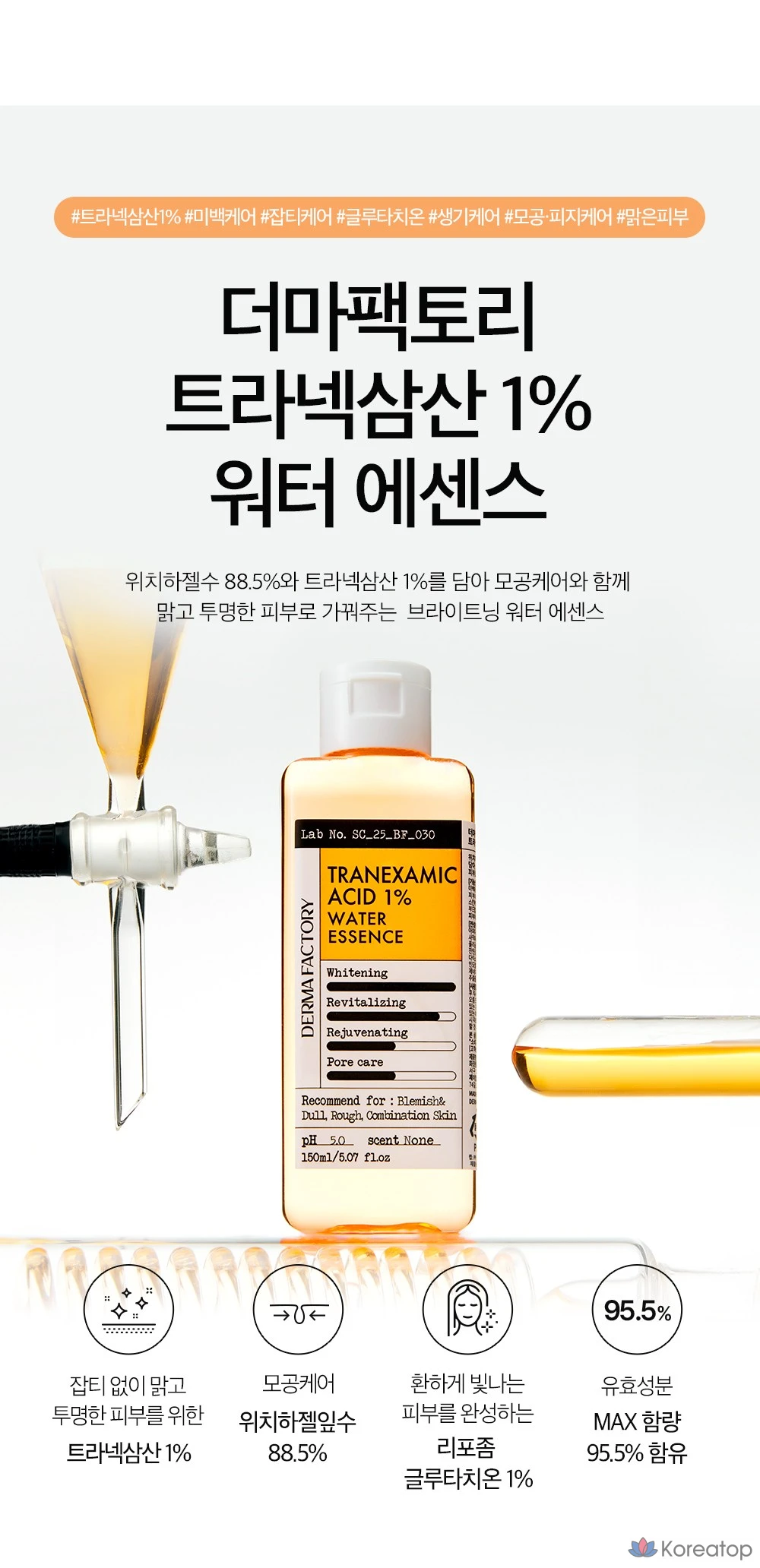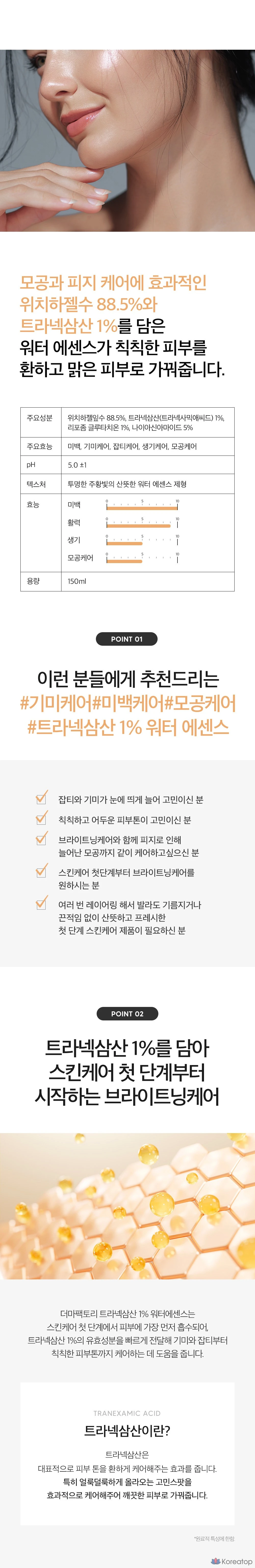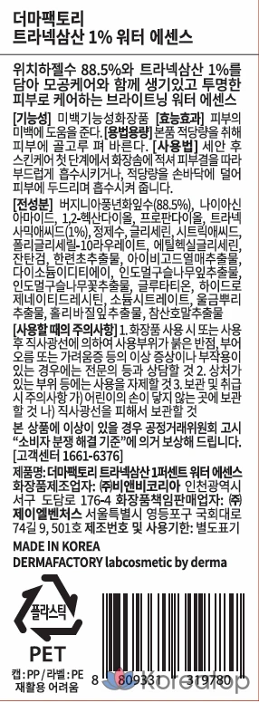 Эссенция на водной основе с транексаминовой кислотой 1% от Derma Factory, 150 мл, 1 шт.
