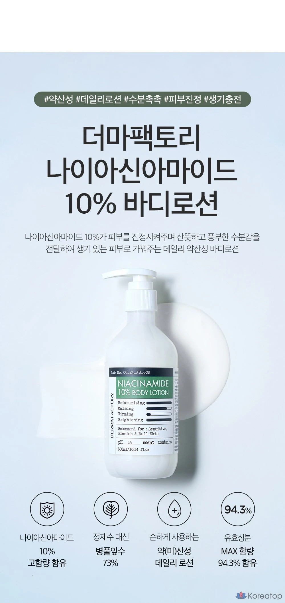 Лосьон для тела Derma Factory Niacinamide 10% Body Lotion, 300 мл, 1 шт.