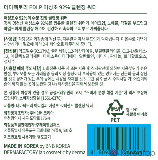Мицеллярная очищающая вода Derma Factory EDLP с 92% мягкой кислотностью, не требующая смывания, 1 шт., 300 мл