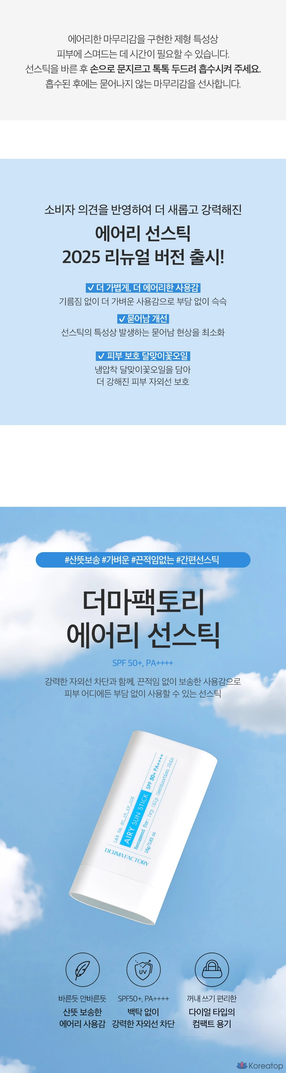 Солнцезащитный стик Derma Factory Airy Sun Stick SPF50+ PA++++, 18 г, 1 шт.