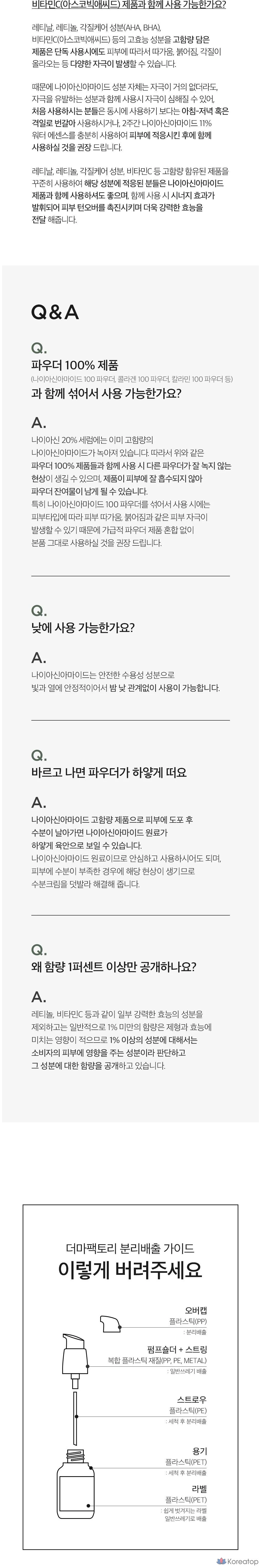 Сыворотка с ниацинамидом Derma Factory 20% предназначена для улучшения текстуры и тона кожи. Высокая концентрация активного ингредиента способствует уменьшению видимости пор и выравниванию цвета лица. Легкая текстура средства быстро впитывается, не оставляя липкости, что делает его идеальным для использования в утреннем и вечернем уходе. Подходит для всех типов кожи, включая чувствительную, и помогает укрепить защитный барьер, обеспечивая коже здоровый и сияющий вид. Используйте регулярно для достижения наилучших результатов 🌟.