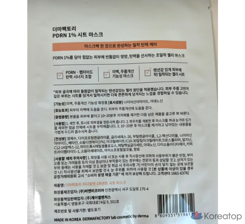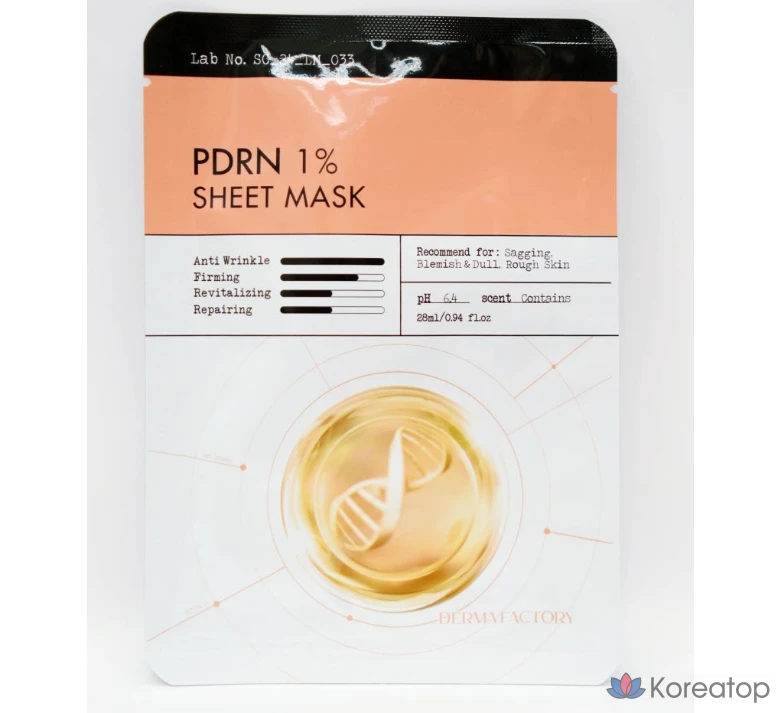 Тканевая маска Derma Factory PDRN 1%, 28 мл, 1 упаковка, 1 шт.
