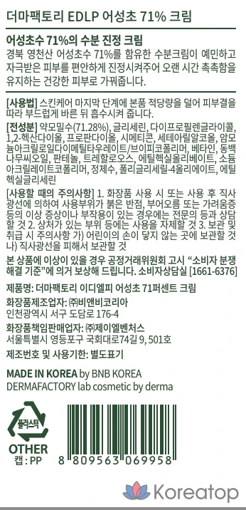Увлажняющий крем Derma Factory EDLP Eoseongcho 71%, 60 г, 1 шт.