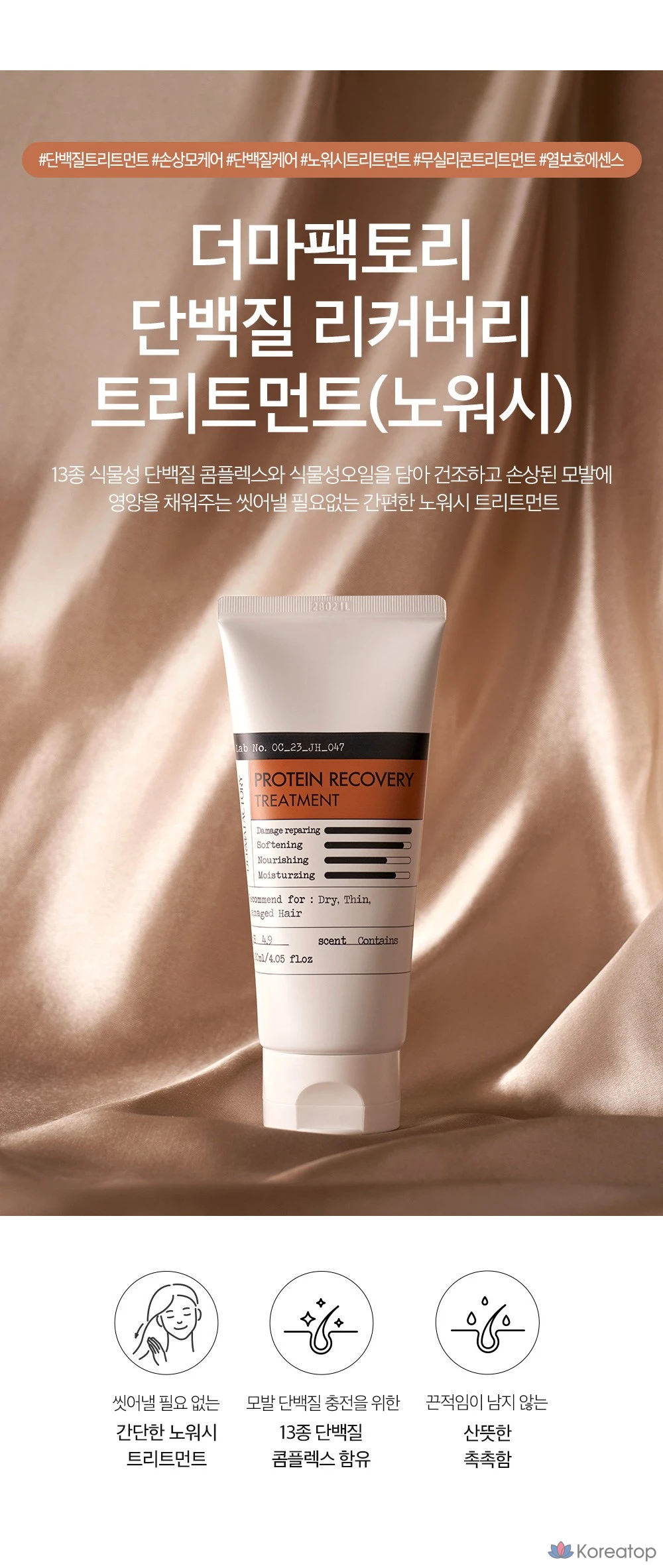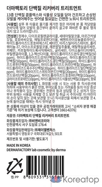 Восстанавливающая протеиновая маска для волос Derma Factory, 1 шт., 120 мл