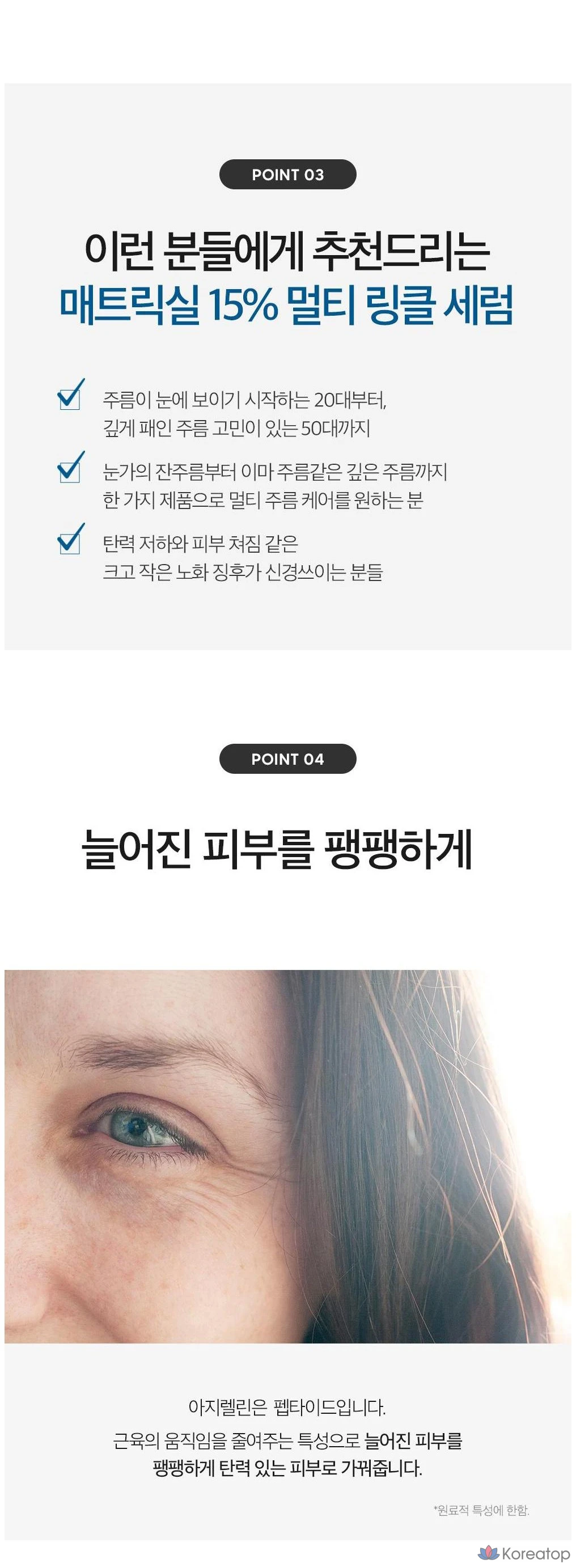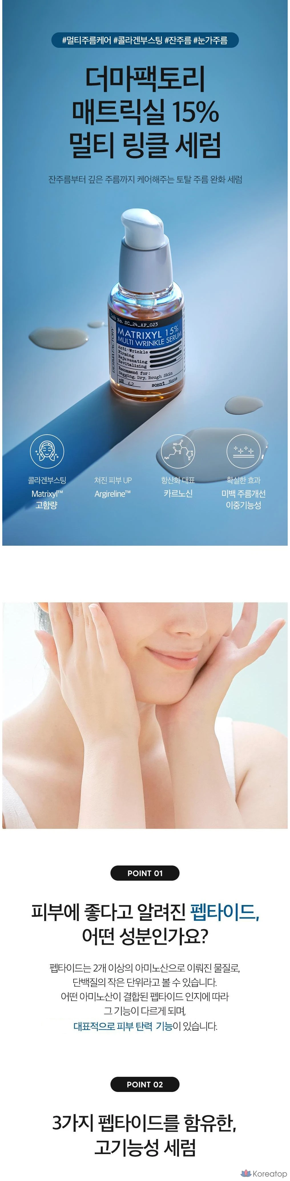 Сыворотка против морщин Dermafactory Matrixil разработана для борьбы с признаками старения кожи. Благодаря активному компоненту Matrixil, она способствует уменьшению морщин и улучшению упругости кожи. Легкая текстура быстро впитывается, оставляя кожу увлажненной и свежей. Натуральные ингредиенты в составе обеспечивают бережный уход, подходящий для всех типов кожи. Используйте ежедневно для достижения наилучших результатов и наслаждайтесь более молодой и сияющей кожей 🌟.