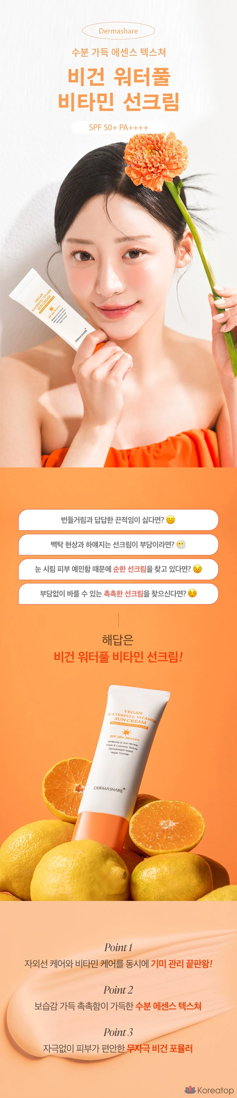 Солнцезащитный крем Dermashare Waterful Vitamin Sunscreen SPF50+ PA++++, 50 г, 1 шт.