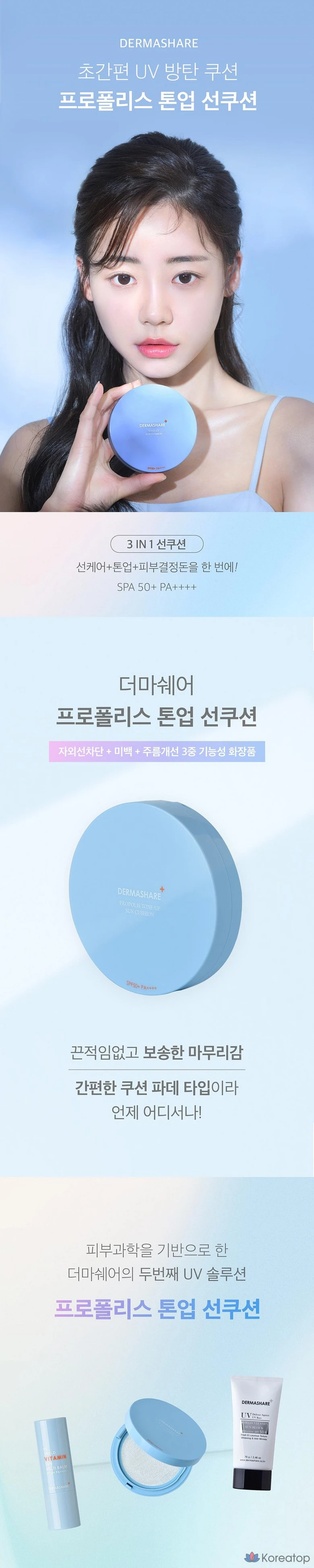 Dermashare Propolis Tone-Up Big Sun Cushion 25 г, основной продукт + сменный блок SPF50+PA++++, 1 комплект