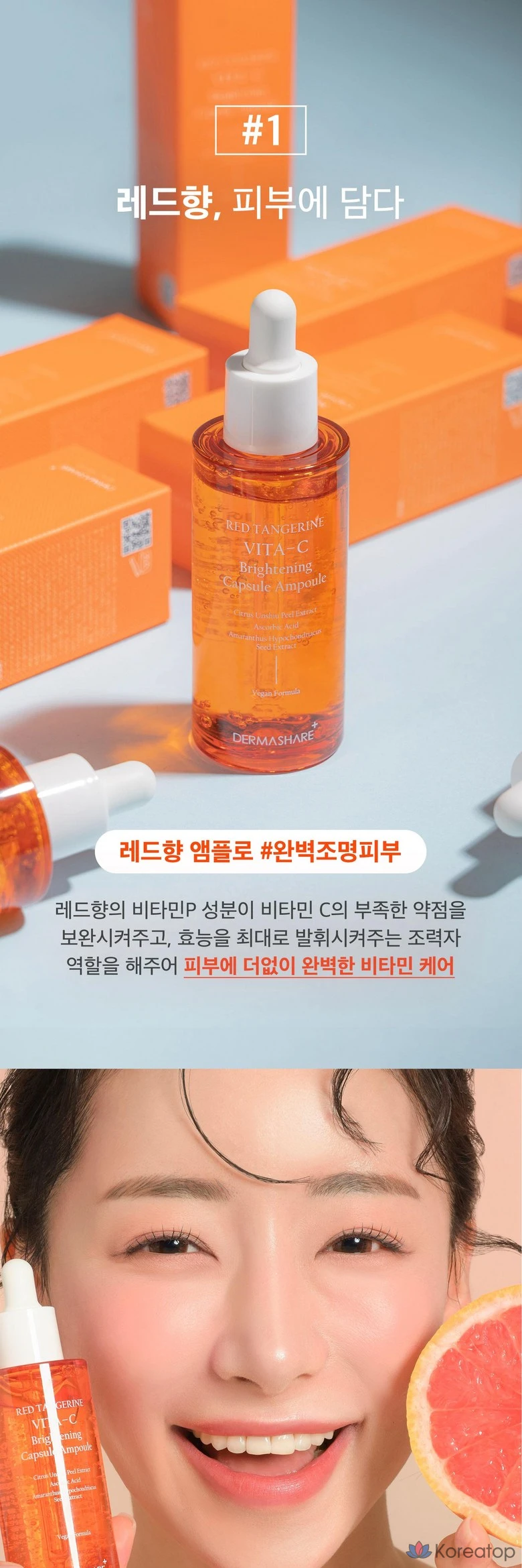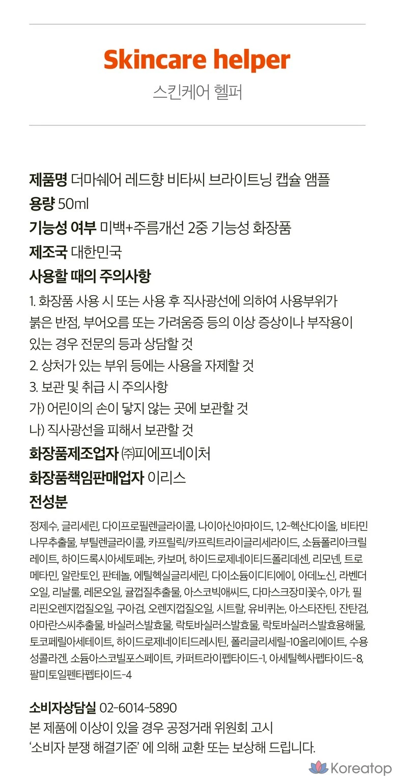 Сыворотка-капсула Dermashare Red Fragrance Vita C для осветления, отбеливания, сияния, ухода за кожей, от веснушек и морщин, увлажняющая ампула, 50 мл, 1 шт.