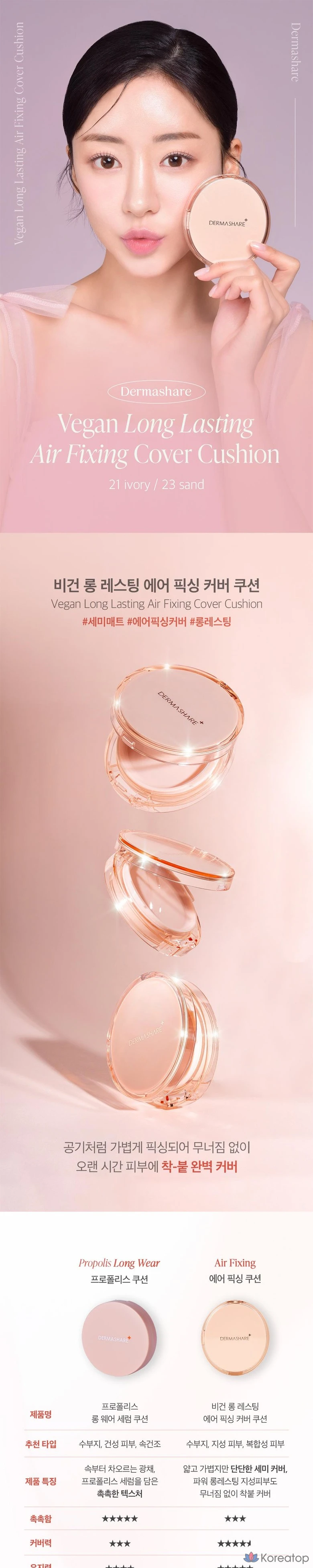 Тональный крем-кушон Dermashare Vegan Radiant Glow Long-Lasting Air Fixing Cover Cushion Pact, № 21, 1 основной продукт + 1 сменный блок, 1 шт.