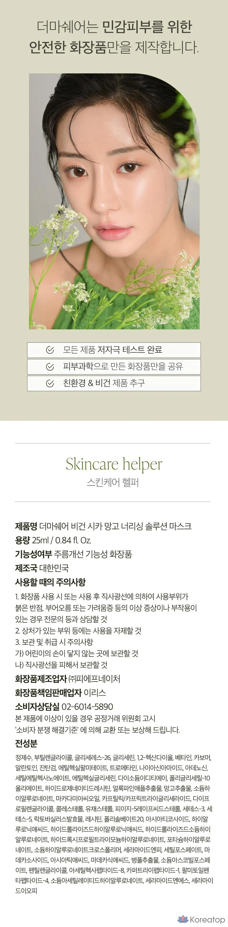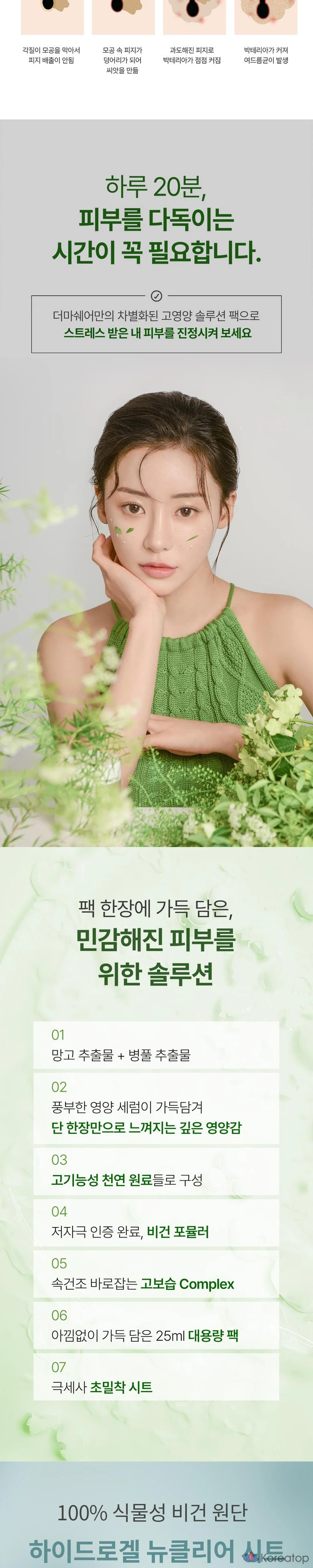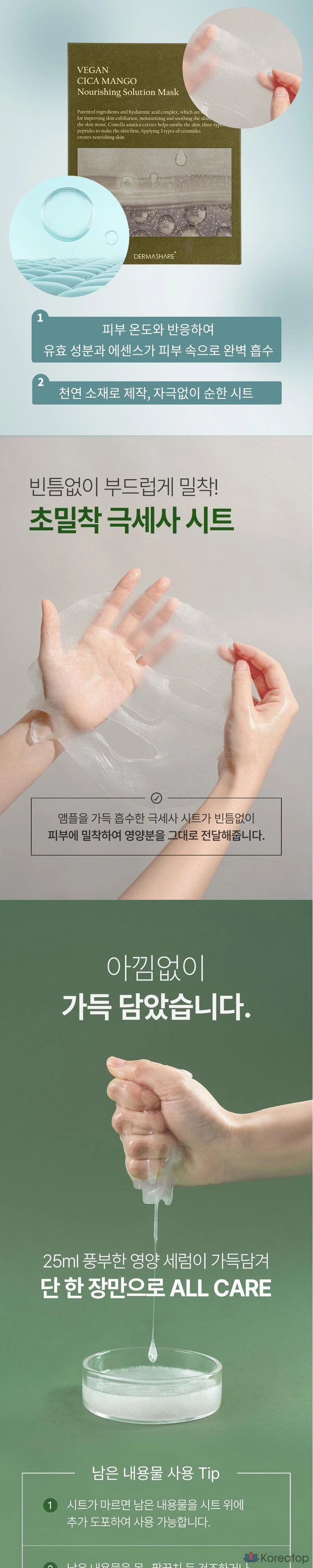 Увлажняющая и успокаивающая маска для лица Dermashare Vegan Cica Mango Nourishing Solution, 25 мл, 1 шт., 5 шт.