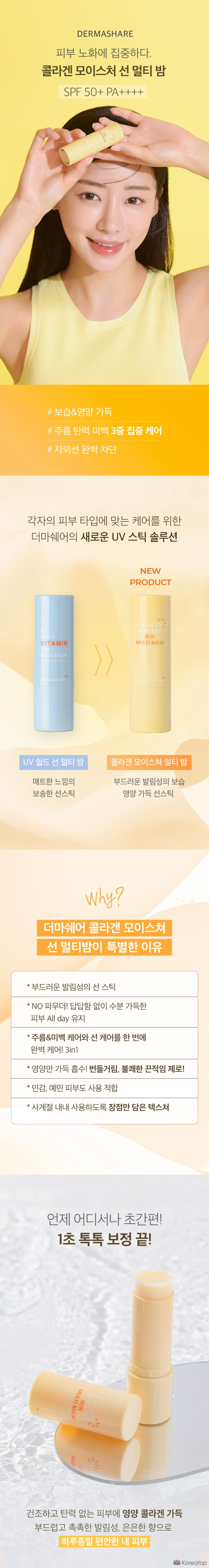 Увлажняющий солнцезащитный бальзам Dermashare Collagen Moisture Sun Multi-Balm SPF50+ PA++++, 11 г, 1 шт.