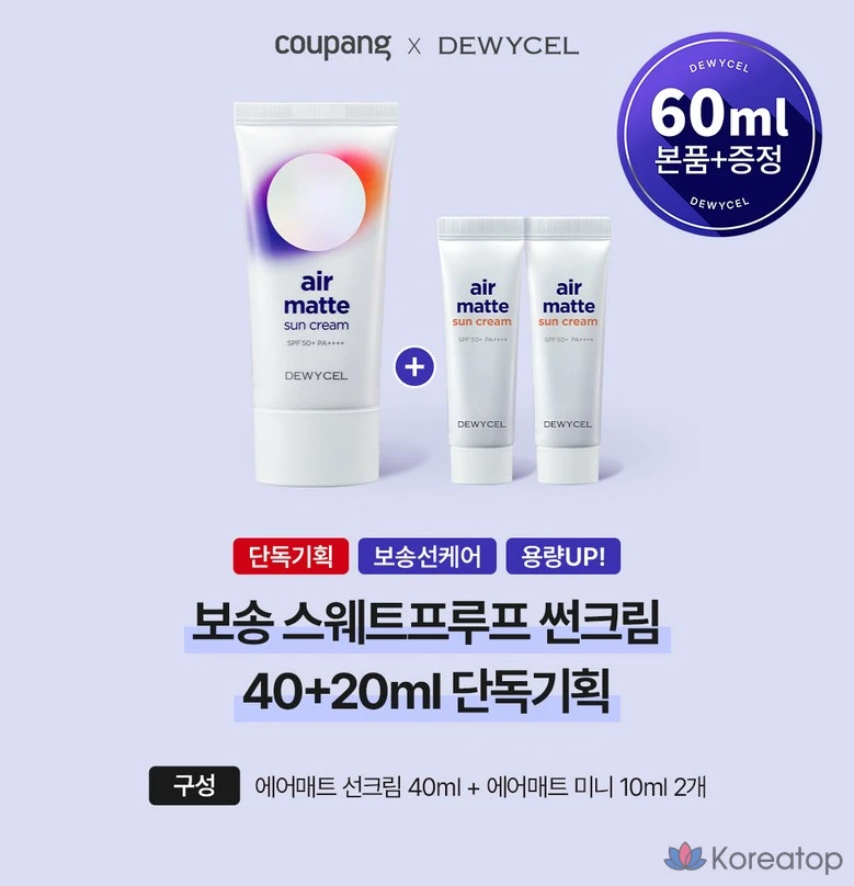 Солнцезащитный матирующий крем DEWYCEL Sweatproof Air Matte Sunscreen SPF50+ PA++++, 40 и 20 мл, 1 шт., 60 мл
