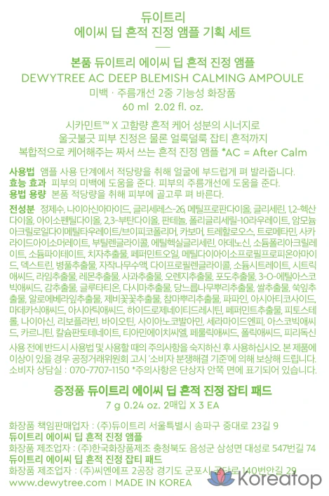 Успокаивающая ампула для лица DEWYTREE AC Deep Moisture Barrier Calming Ampoule 60 мл