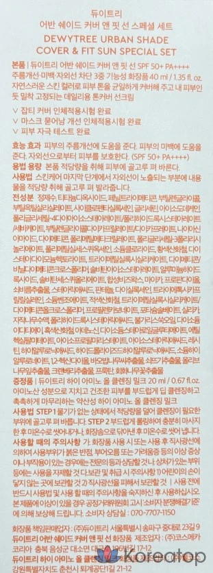 Набор Dewytree Urban Shade Cover & Fit Sunscreen SPF50+ PA++++ 40 мл + очищающее молочко 20 мл, 1 шт.