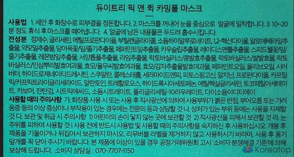 Успокаивающая маска для лица DEWYTREE Pick and Quick Calming Full Mask пропитана эссенцией с экстрактами мяты и алоэ вера, которые эффективно успокаивают раздражённую кожу и снижают её температуру. Гиалуроновая кислота обеспечивает глубокое увлажнение, а пробиотики укрепляют защитный барьер кожи. Удобная упаковка с 30 масками позволяет легко включить продукт в ежедневный уход. Маска подходит для всех типов кожи, особенно для чувствительной и склонной к раздражениям. 🌱❄️