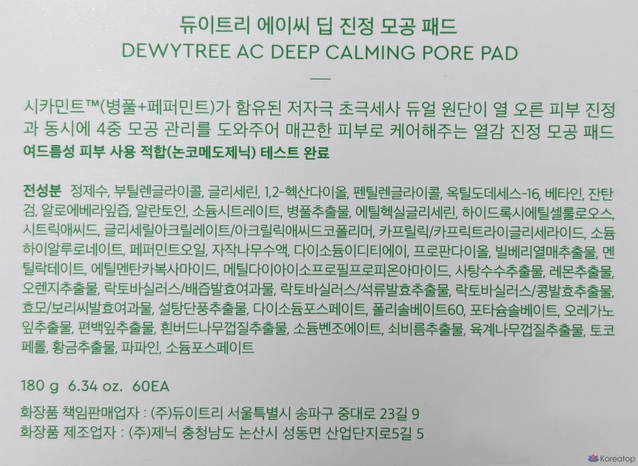 Успокаивающие пэды для лица DEWYTREE AC Control EX Deep Green пропитаны эссенцией с экстрактом центеллы азиатской и ментолом, обеспечивая увлажнение и охлаждающий эффект. Салициловая кислота в составе мягко отшелушивает, а антибактериальные компоненты помогают бороться с несовершенствами кожи. Упаковка содержит 60 пэдов, удобных для ежедневного использования. 🌱❄️
