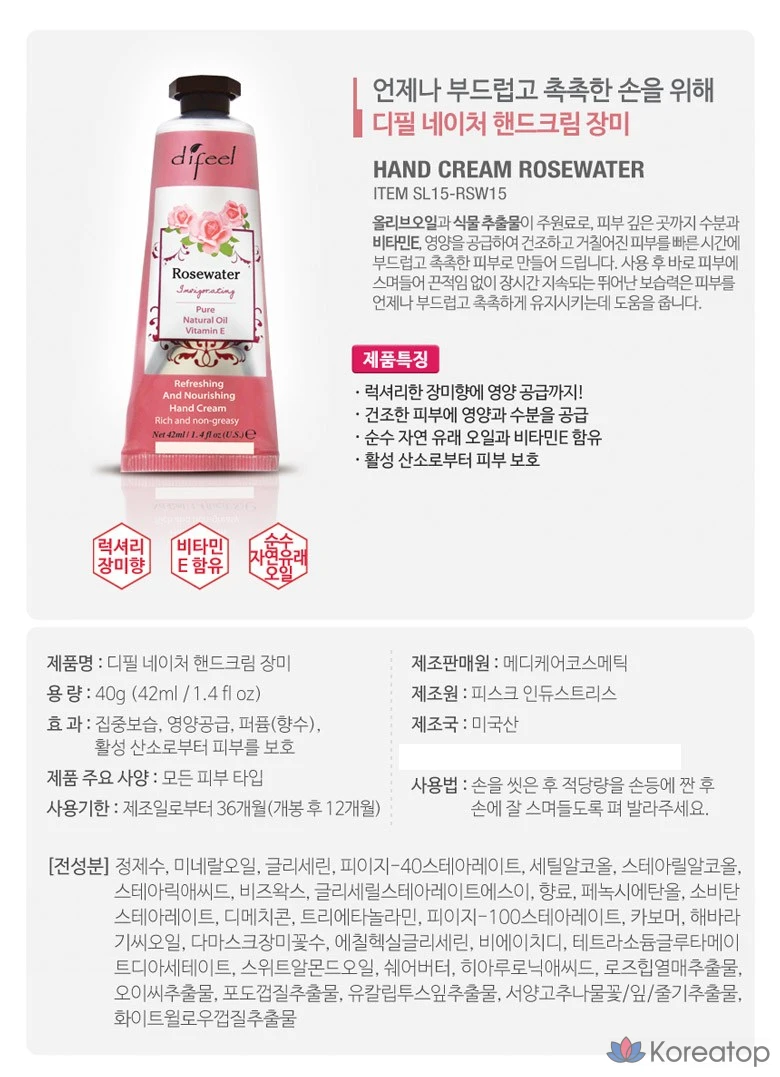 Крем для рук Difeel Nature с розовой водой, 42 мл, 1 шт.