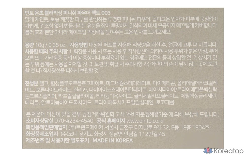 Dinto Uncho Blur Fixing Finish Powder, 10 г, 1 шт.