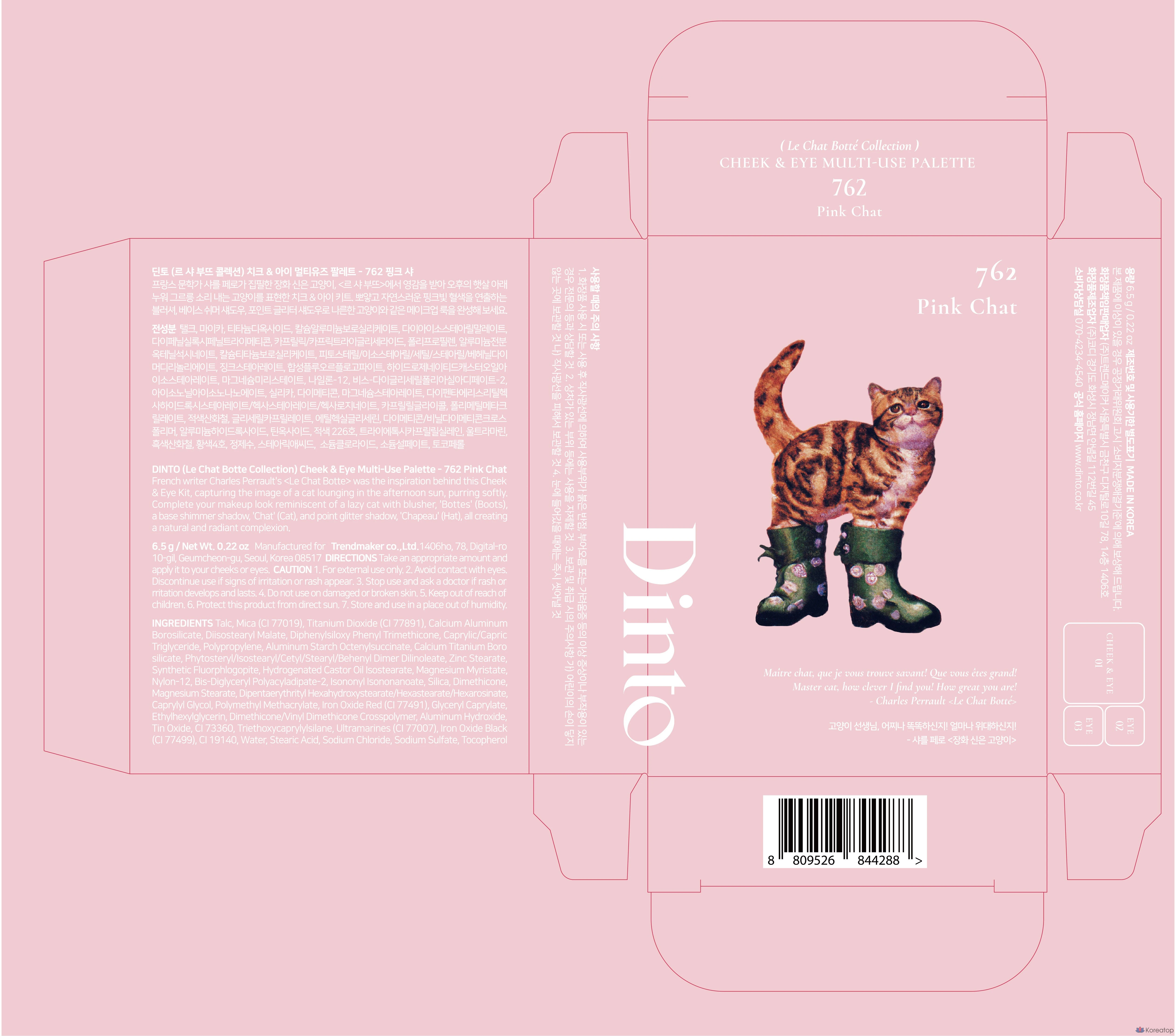 Палетка теней и румян Dinto Cheek & Eye Multi-Use Palette 6,5 г, розовый оттенок 762, 1 шт.